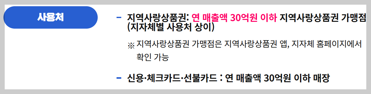 ** 대형마트/백화점 내 입점한 소상공인 임대매장 (미용실, 약국, 꽃집 등)은 사용 가능할 수 있어요.