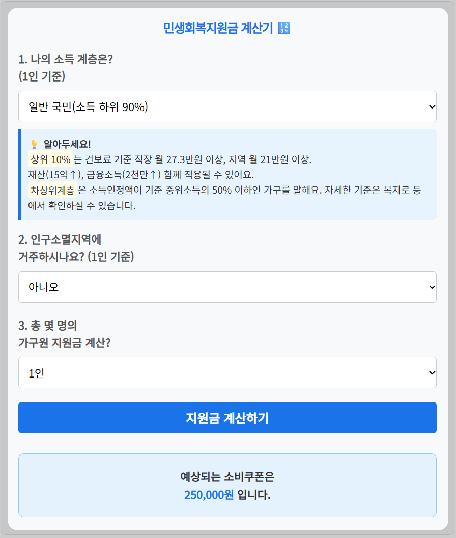 민생회복 소비쿠폰은 모의계산기로 쉽게 계산이 가능해요.